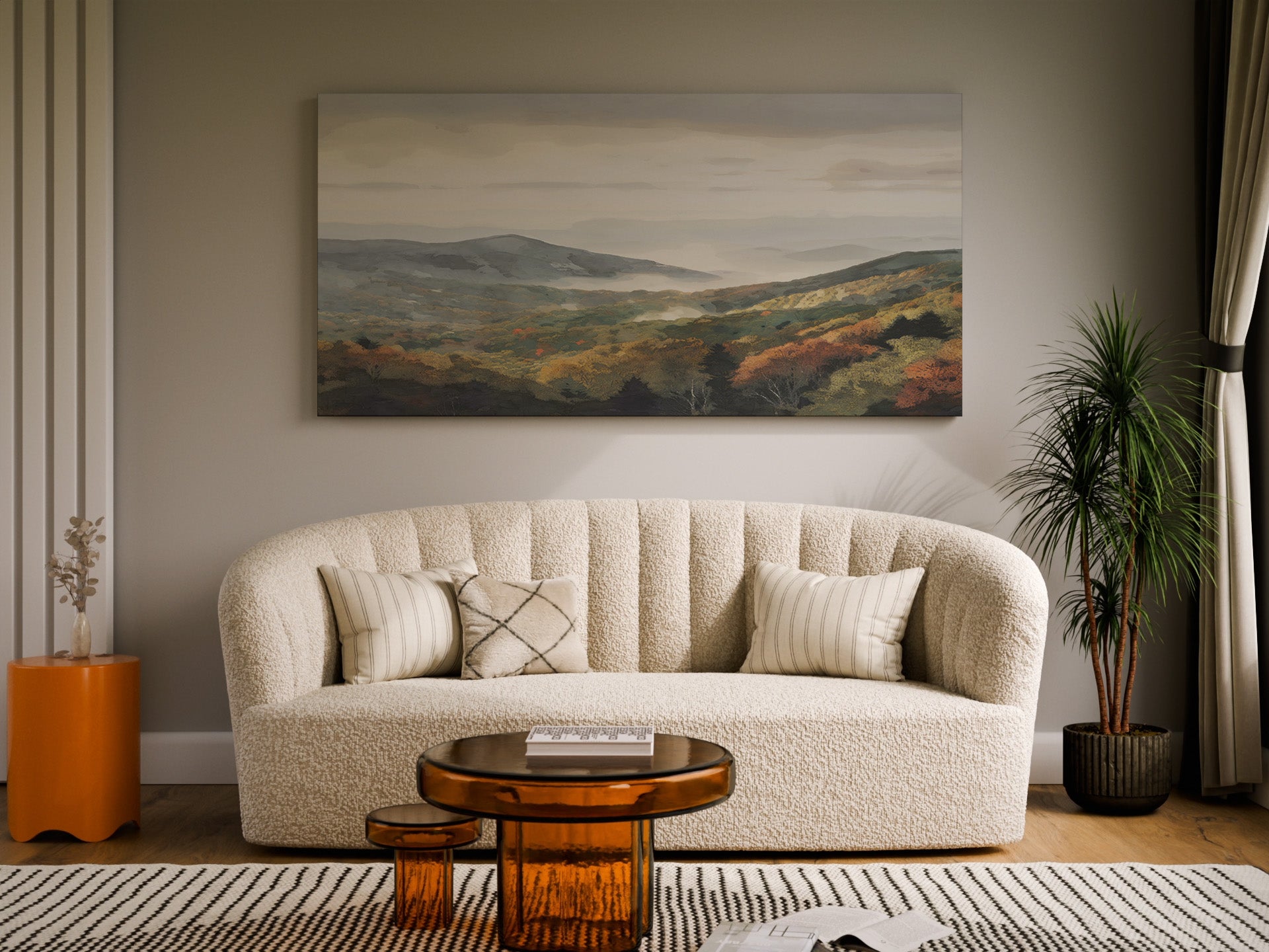 Blue Ridge Mountains Wrapped Canvas — Misty Autumn Landscape Wall Art | Cozy Nature Décor