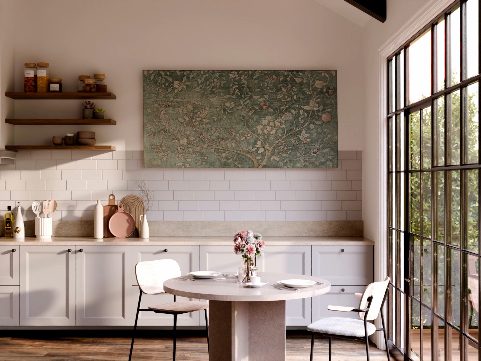 Botanical Tree of Life Wall Art – Vintage Green Floral Canvas