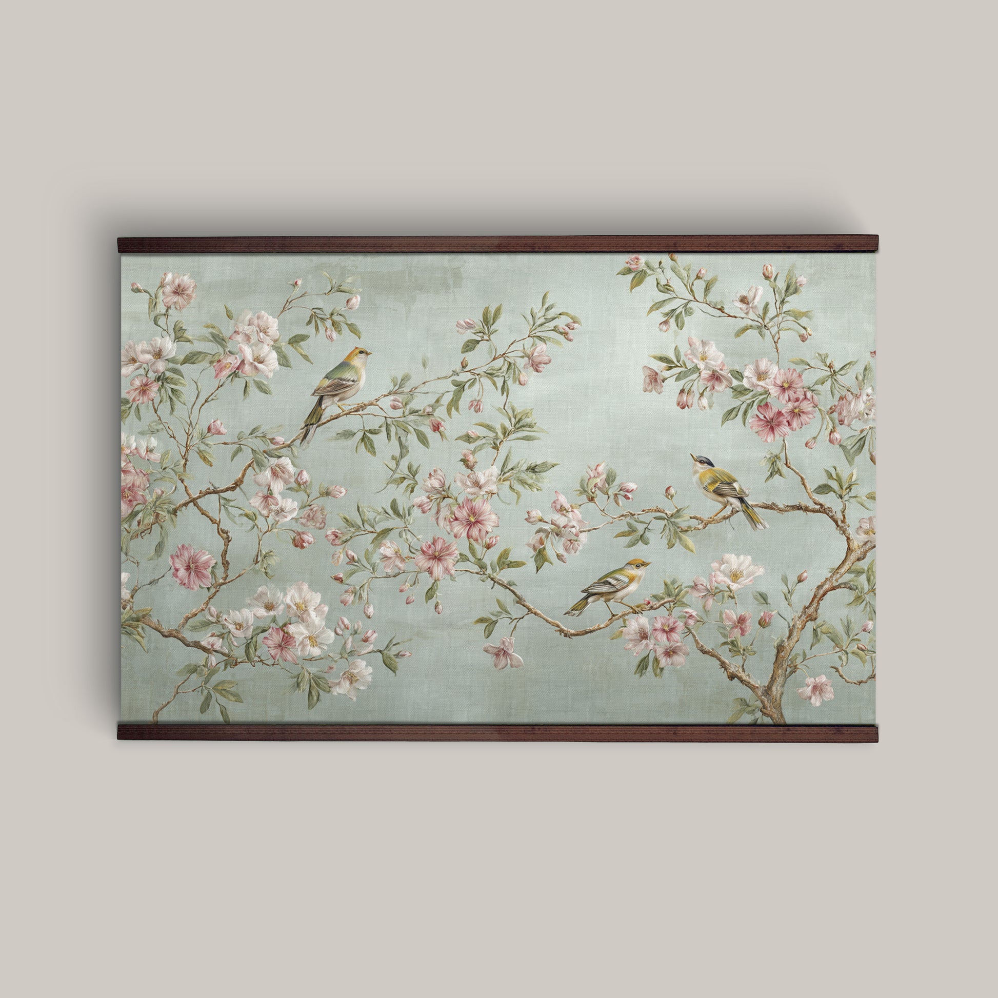 Chinoiserie Bird & Blossom Wall Art – Pastel Botanical Tapestry | Art Muse