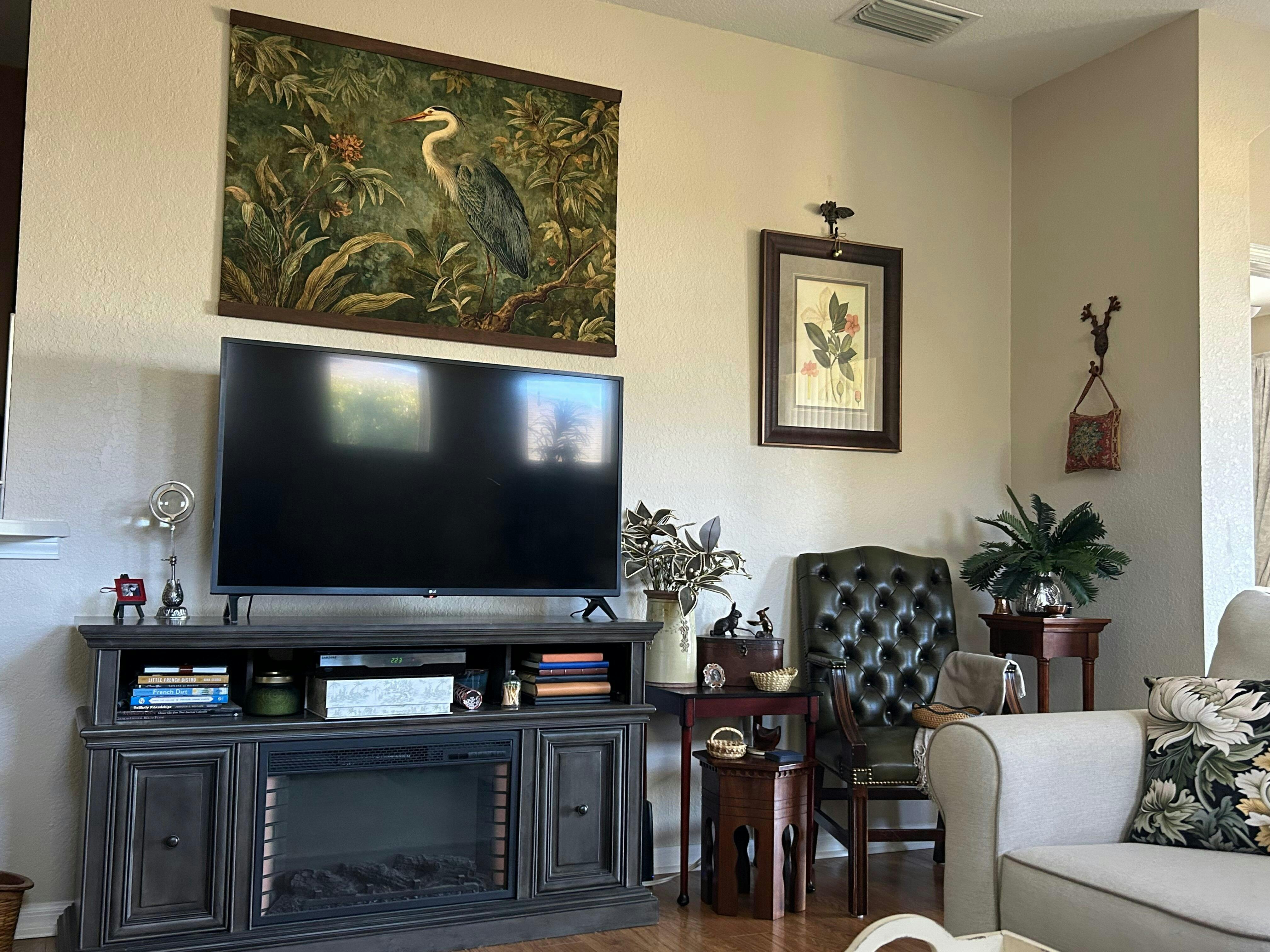 Add depth, drama, and timeless elegance to your space with this Emerald Chinoiserie Heron tapestry, featuring a beautifully detailed heron surrounded by lush botanical foliage in rich deep-green tones. The vintage, hand-painted style and textured background create a dramatic statement piece perfect for sophisticated interiors and artistic wall displays.