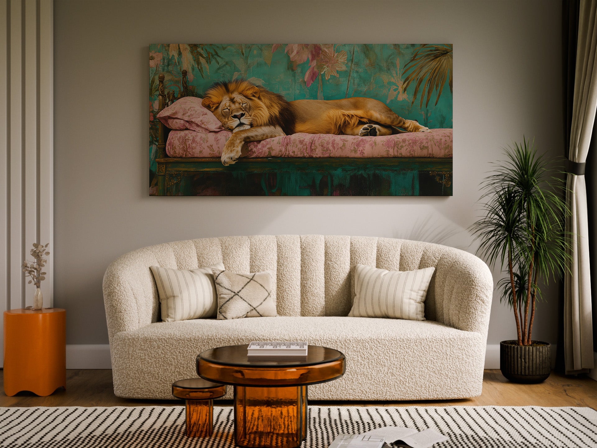 Sleeping Lion Wrapped Canvas — Regal Animal Art | Maximalist Jungle Interior Décor