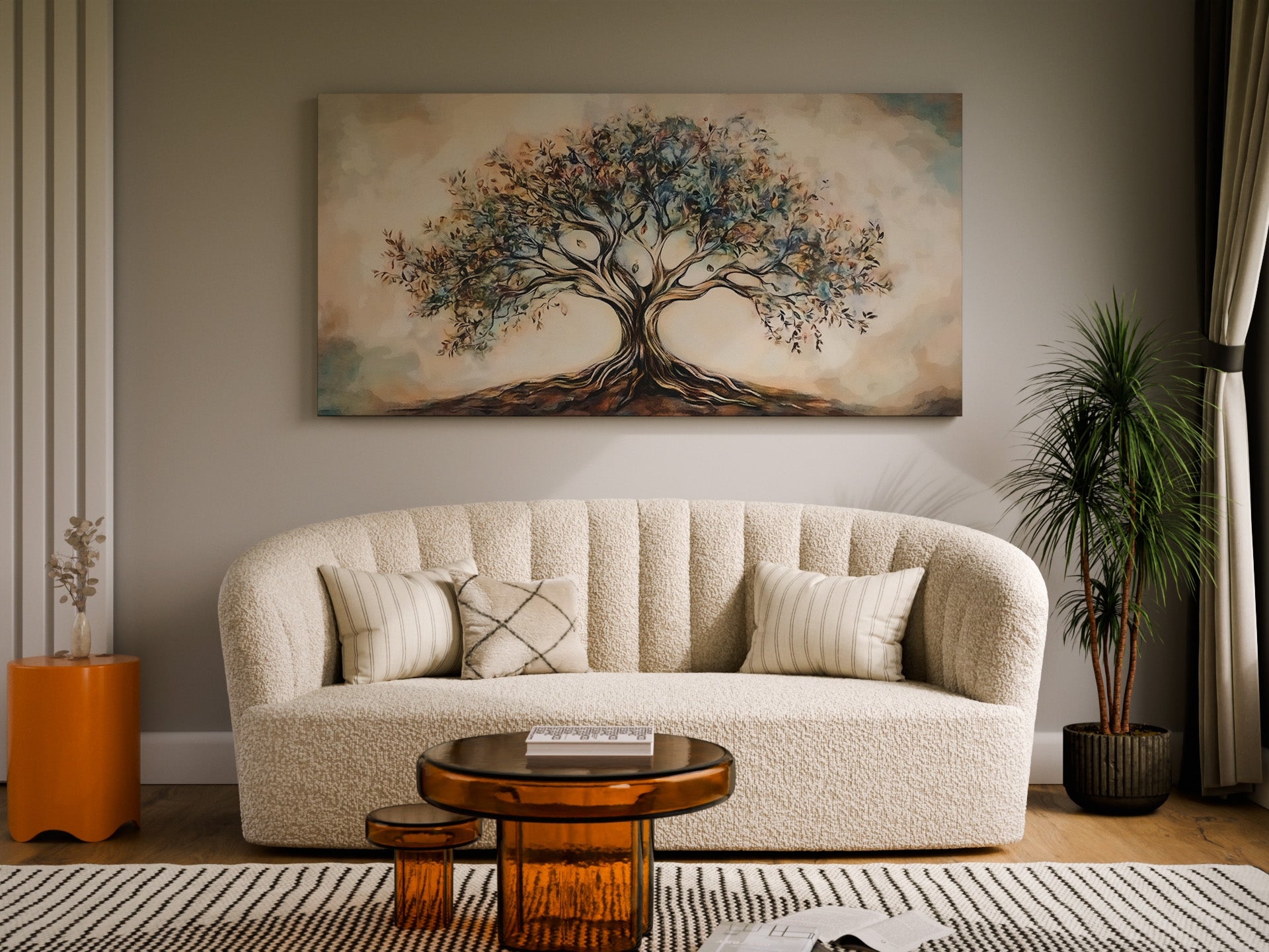 Bring a sense of harmony and natural calm into your home with our Tree of Life wrapped canvas. This artwork blends soft earth tones with a hand-painted style, creating a peaceful focal point that feels warm, elegant, and timeless.
