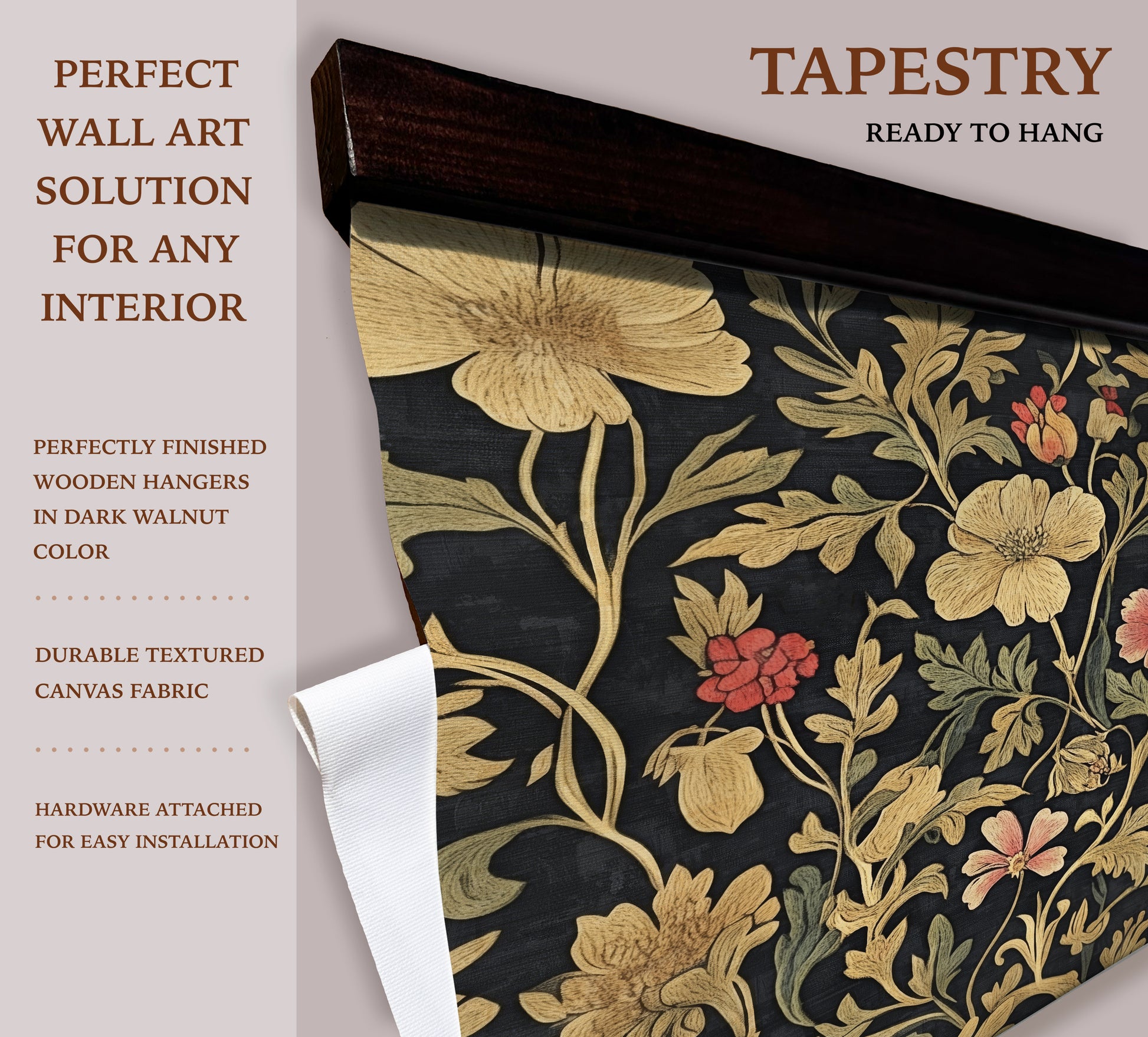 William Morris Style Tapestry Wall Art – Vintage Botanical Floral Design with Wooden Hangers | Art Muse