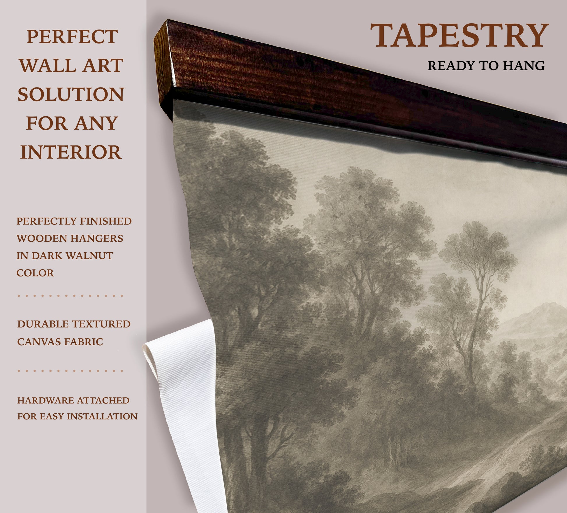 Vintage Landscape Wall Art – Monochrome Nature Tapestry | Art Muse