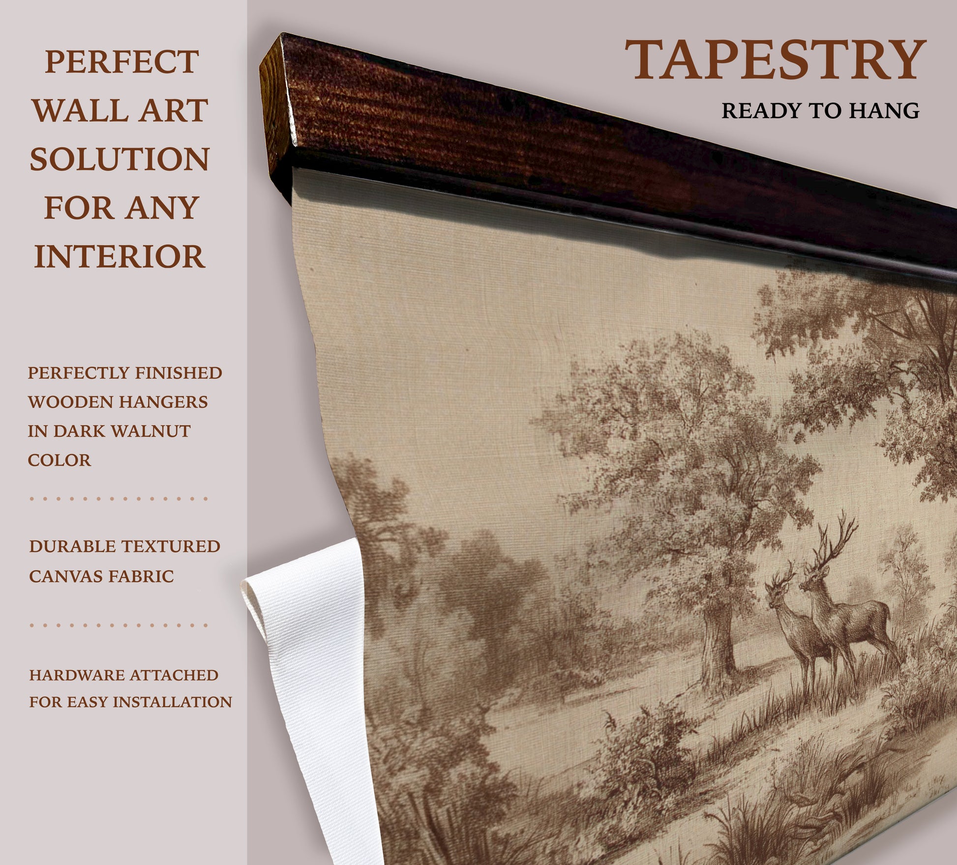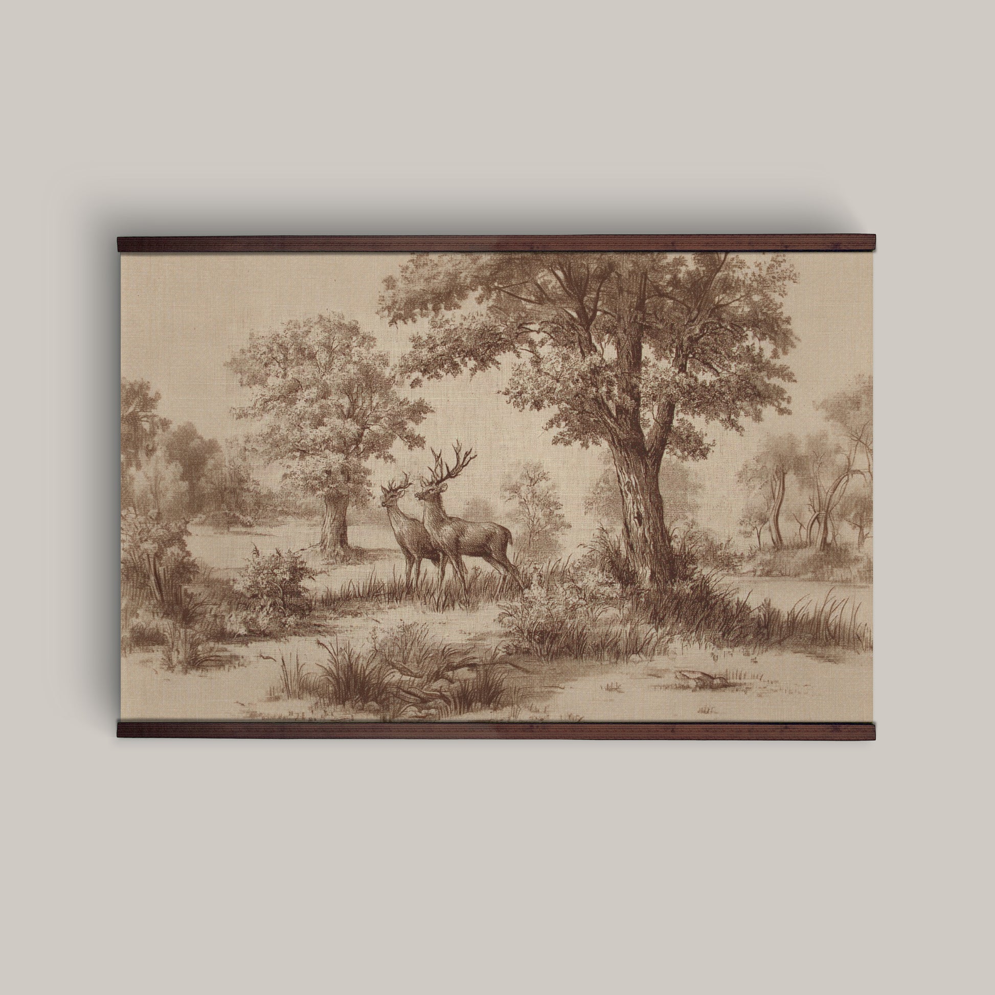 Vintage Woodland Deer Wall Art – Neutral Landscape Tapestry | Art Muse